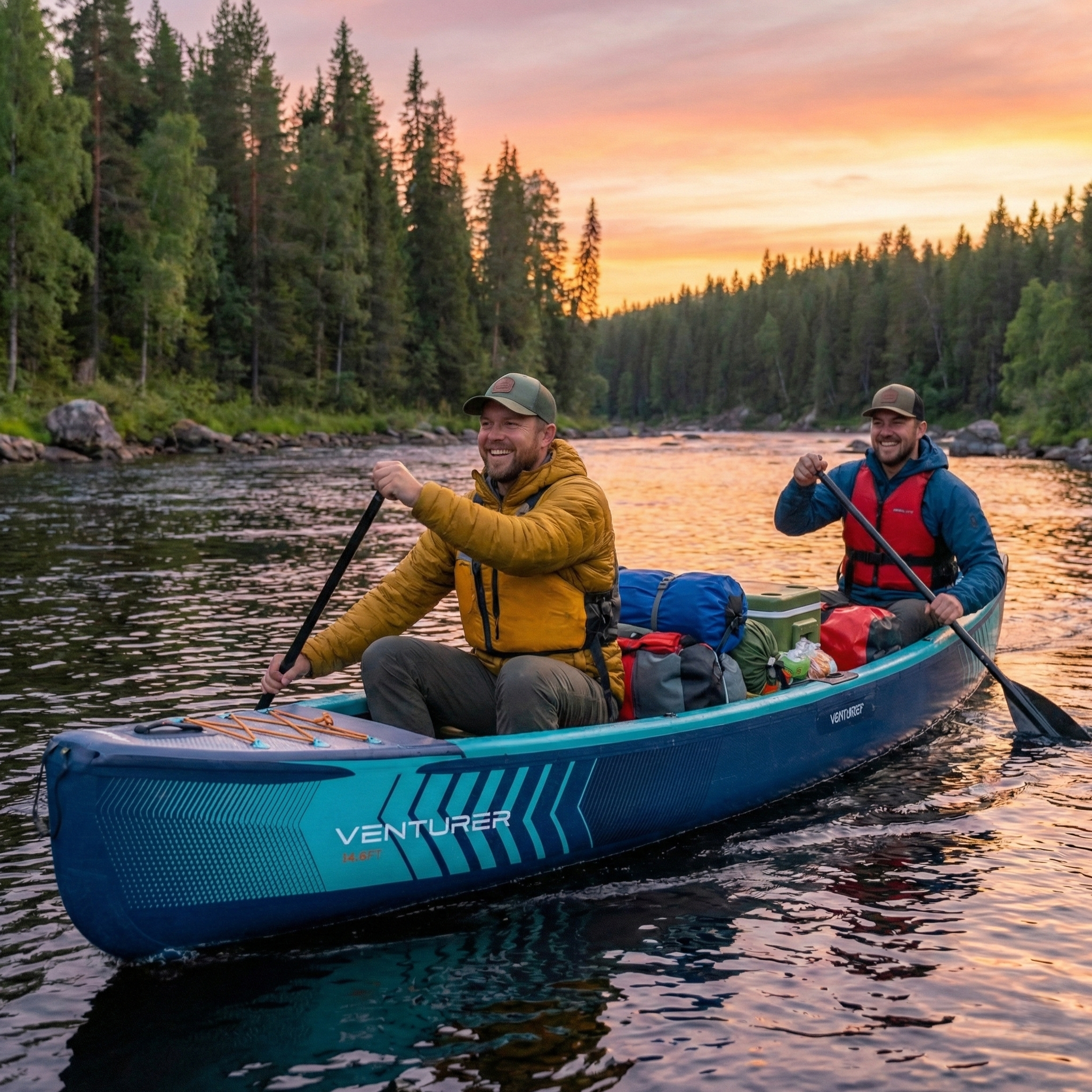 Pro-Level Durability. Multi-person Capacity. The Backcountry Master. Ready to explore beyond the beaten path? The Venturer Canoe is engineered for bold, multi-person getaways and remote expeditions. Combining the rugged rigidity of professional drop-stitch technology with the ultimate convenience of an inflatable design, the Venturer offers a rock-solid platform for up to three paddlers. Whether you are navigating backcountry lakes or packing for a week-long river trek, this canoe delivers traditional performance with modern portability. Just grab your gear and go - the wild is waiting